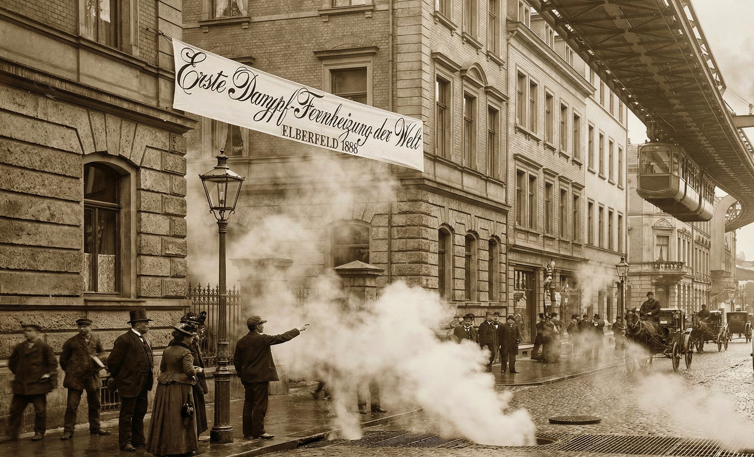 Es ist ein nasskalter Januartag im Jahr 1888. In den Kontoren und Läden der aufstrebenden Textilmetropole Elberfeld qualmen tausende einzelne Kohleöfen. Die Luft ist beißend, der Aufwand riesig. Doch in einem Keller an der Herzogstraße geschieht etwas Revolutionäres: Aus einem schlichten, dampfumwölkten Kessel tritt ein Röhrenbündel aus und verschwindet im Erdreich. Was hier verlegt wird, ist keine neue Wasserleitung. Es ist die Pulsader der modernen Stadt – die erste öffentliche Dampffernheizung der Welt.